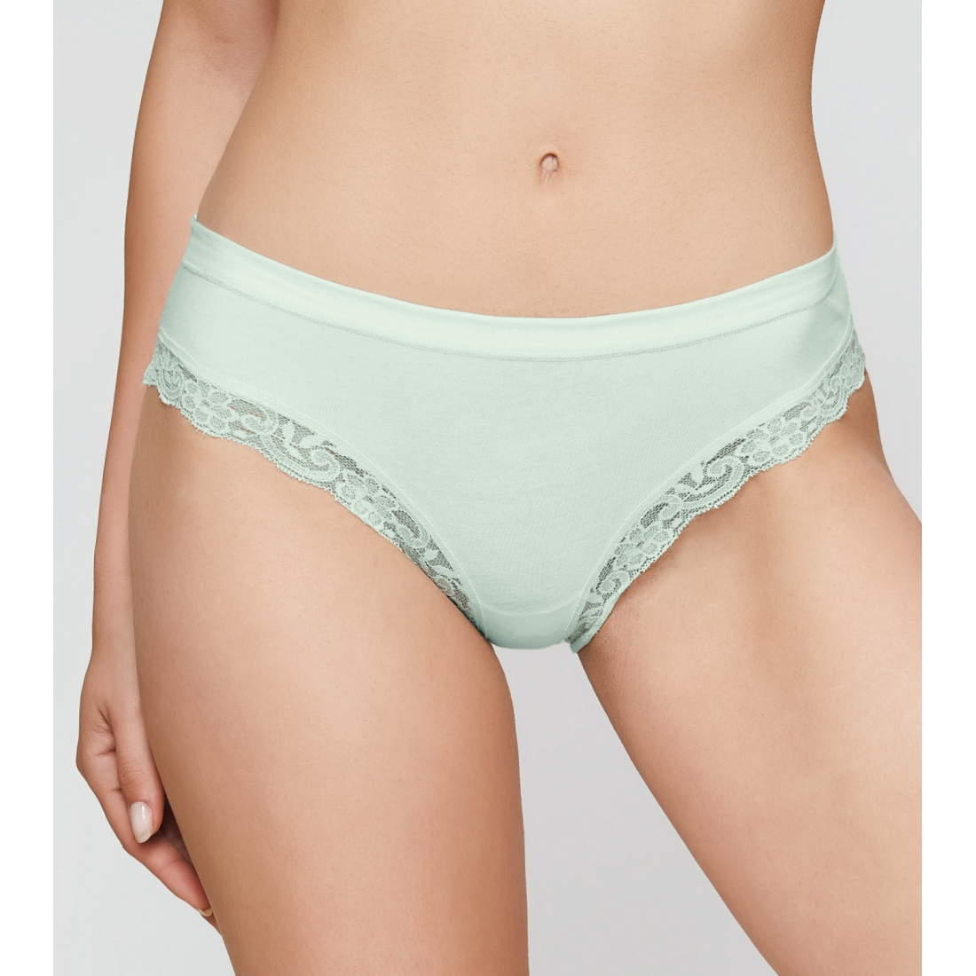 Описание: Трусы-слип с кружевным поясом, украшены бантиком спереди. Состав: Полиамид 92%, Эластан 8%..