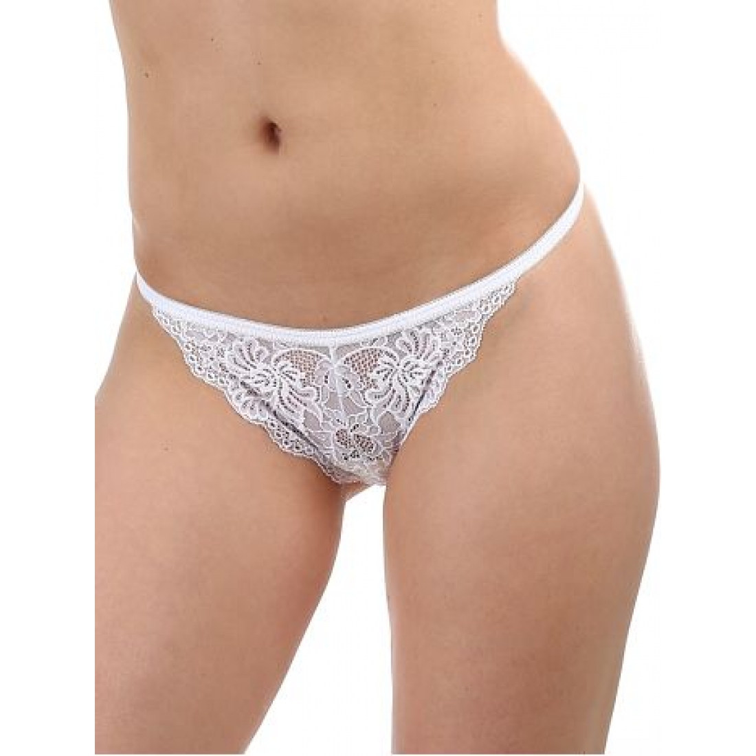Описание: Соблазнительные трусики стринг с кружевной передней деталью. Задняя деталь выполнена из полупрозрачной микросетки, приятной на ощупь.