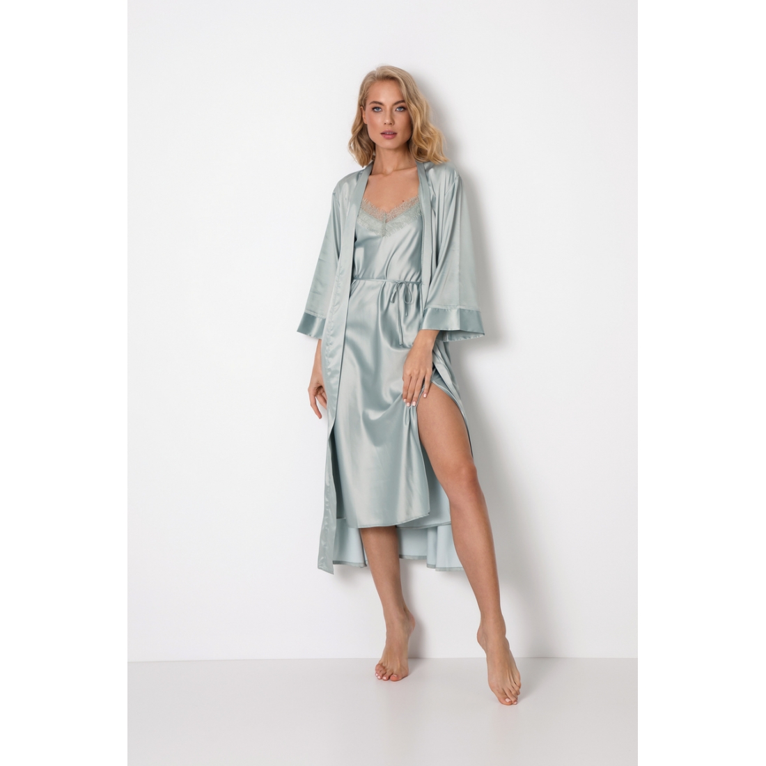 Элегантный, шикарный и минималистичный - если это ваш любимый образ, то коллекция Irene - это именно то, что вы, возможно, ищете. Изделие изготовлено из мягкой полиэстеровой ткани, а длинная форма ниже колена предназначена для тех, кто обычно ищет дополнительную длину в изделиях. Халат имеет рукава длиной 3/4 и завязку на талии.