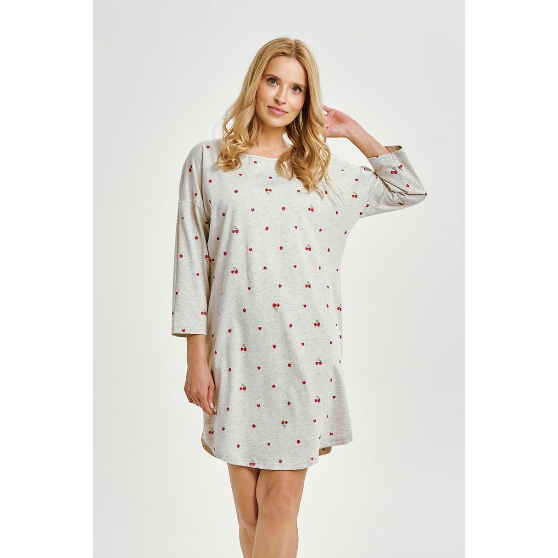Сорочка женская из натурального хлопка. Яркий принт с фруктами. Укороченный рукав до 7/8. Слегка закругленный подол.