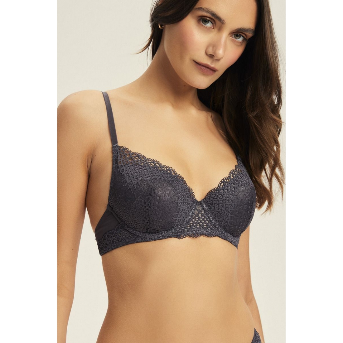 Бюстгальтер от европейского производителя Esotiq. Поролоновая чашка на кости со съемным вкладышем пуш-ап, на базе Kassidy. Несъемные регулируемые бретели. Золотые детали. Внутренняя поверхность чашек хлопковая. Чашки покрыты нежным кружевом. Стан кружевной на подкладе из микросетки. Состав: кружево 86% полиамид, 14% эластан; сетка 68% полиэстер, 32% эластан; подклад чашки 100% хлопок.