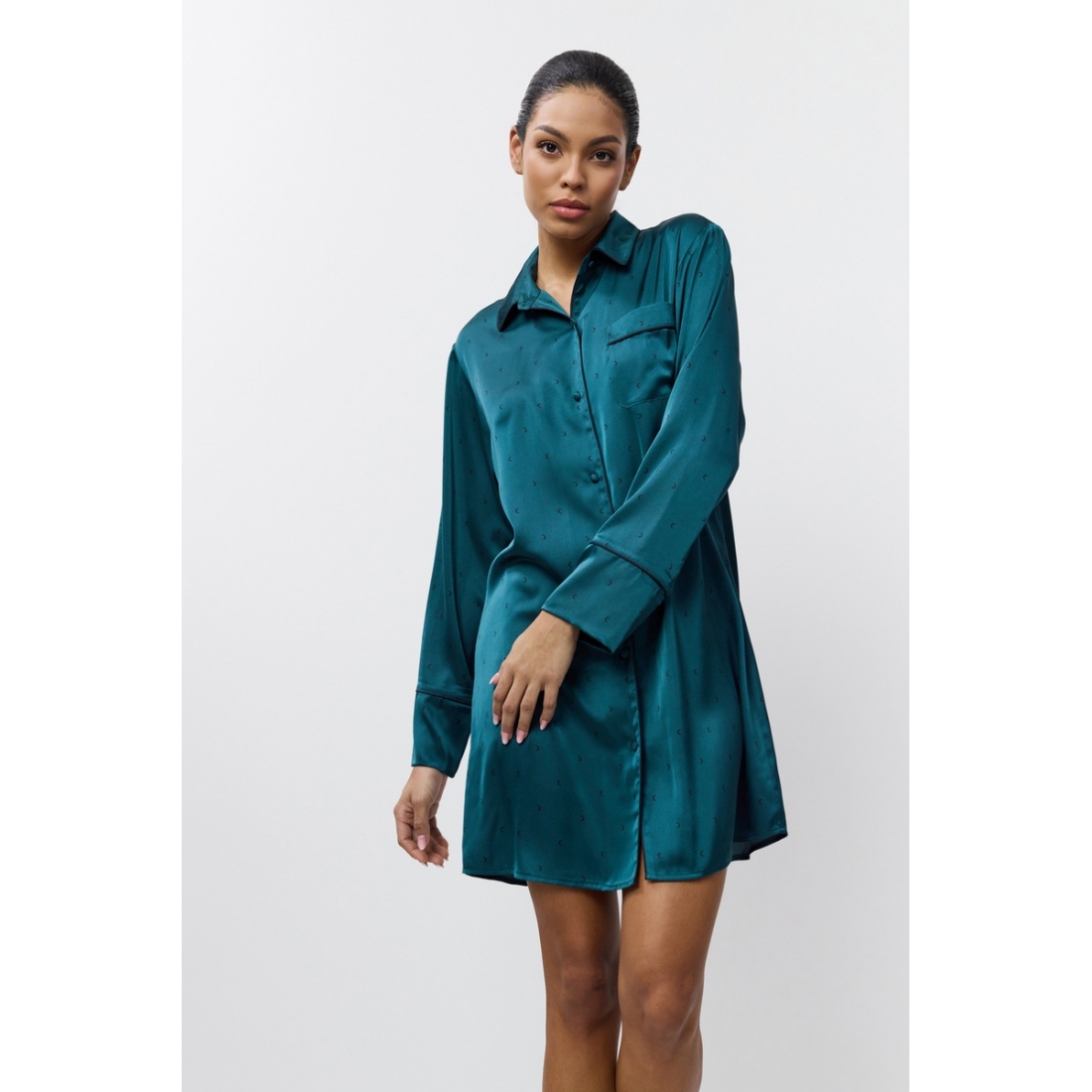 Сорочка женская EMERALDA для максимального комфорта и расслабления. Выполнена из шелковистой атласной ткани. Сорочка рубашечного кроя, на пуговицах, с отложным воротником и нагрудным карманом. Рукава длинные, с окантовкой. Сорочка станет вашим идеальным спутником во время сна.