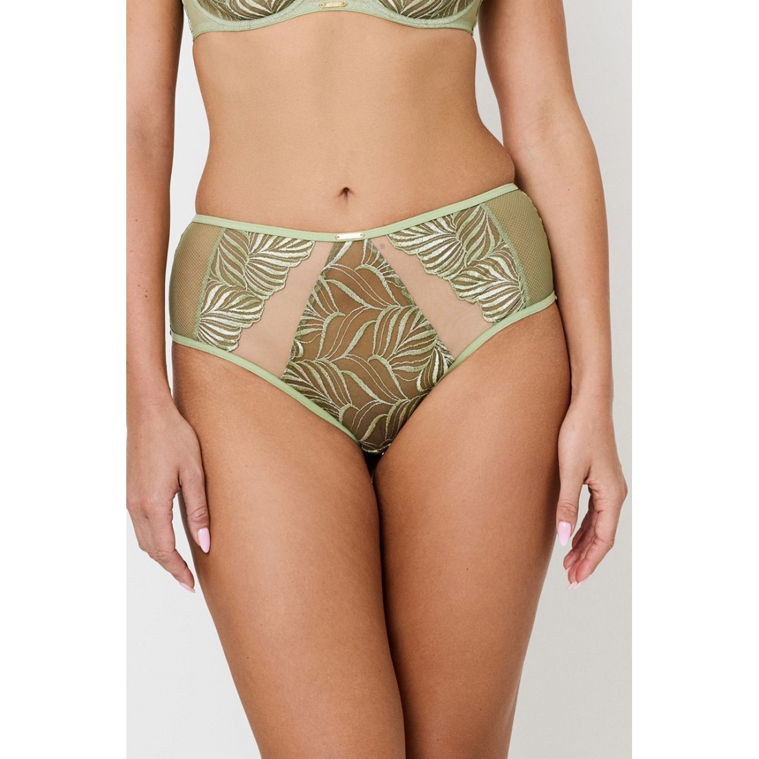 Трусы высокие FLORANCE от европейского производителя Subtille. Модель выполнена из кружева и микросетки. Золотые детали. Фирменный логотип Subtille. Ластовица хлопковая.