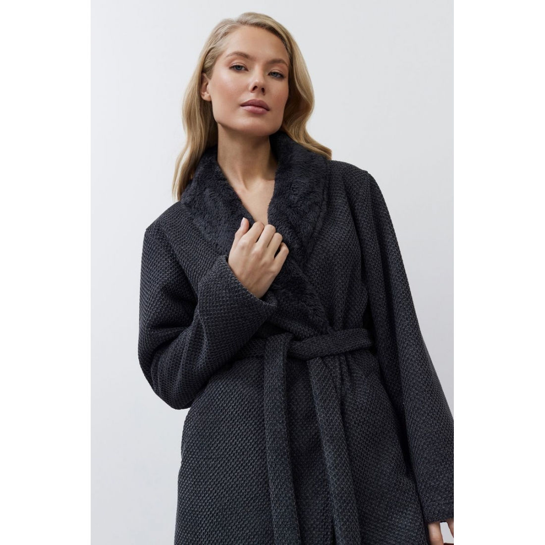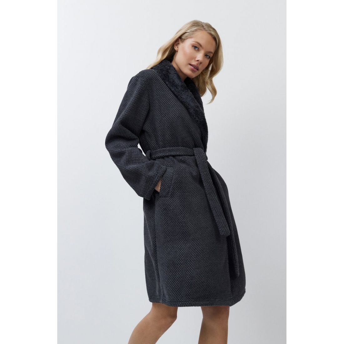 Расслабьтесь с комфортом в мягком халате GEORGIA. Халат женский с поясом, короткий. Изготовлен из текстурной ткани напоминающюу "ромб". По бокам карманы. Окутает и согреет вас в холодное время года. В нем вам будет тепло и уютно!