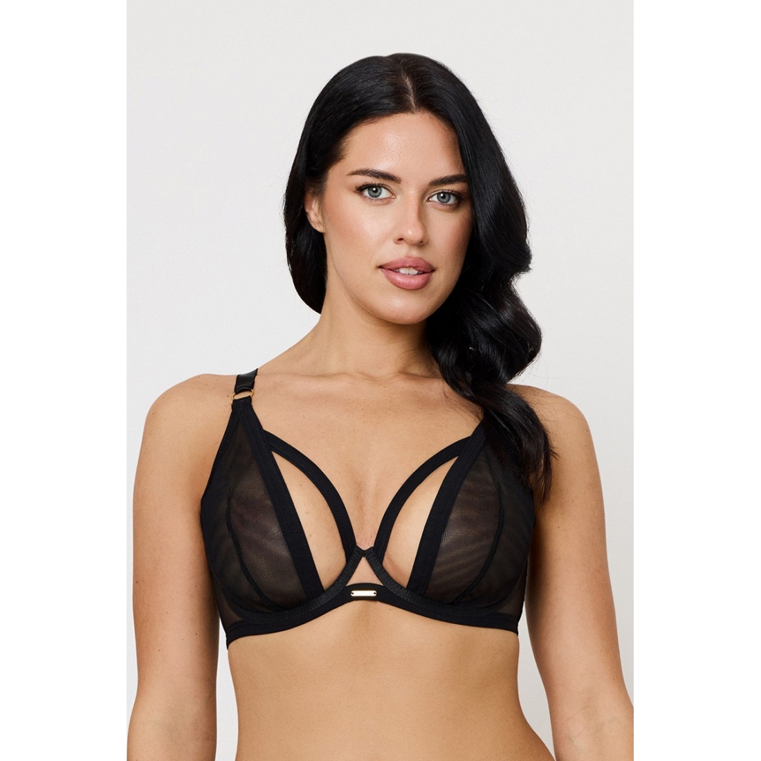 Бюстгальтер HOLLY BLACK от европейского производителя Subtille. Выполнен из микросетки. Мягкая чашка на кости в конструкции B-13 (треугольная чашка), форма BRALETTE. Несъемные регулируемые бретели. Золотые детали. Фирменный логотип Subtille.