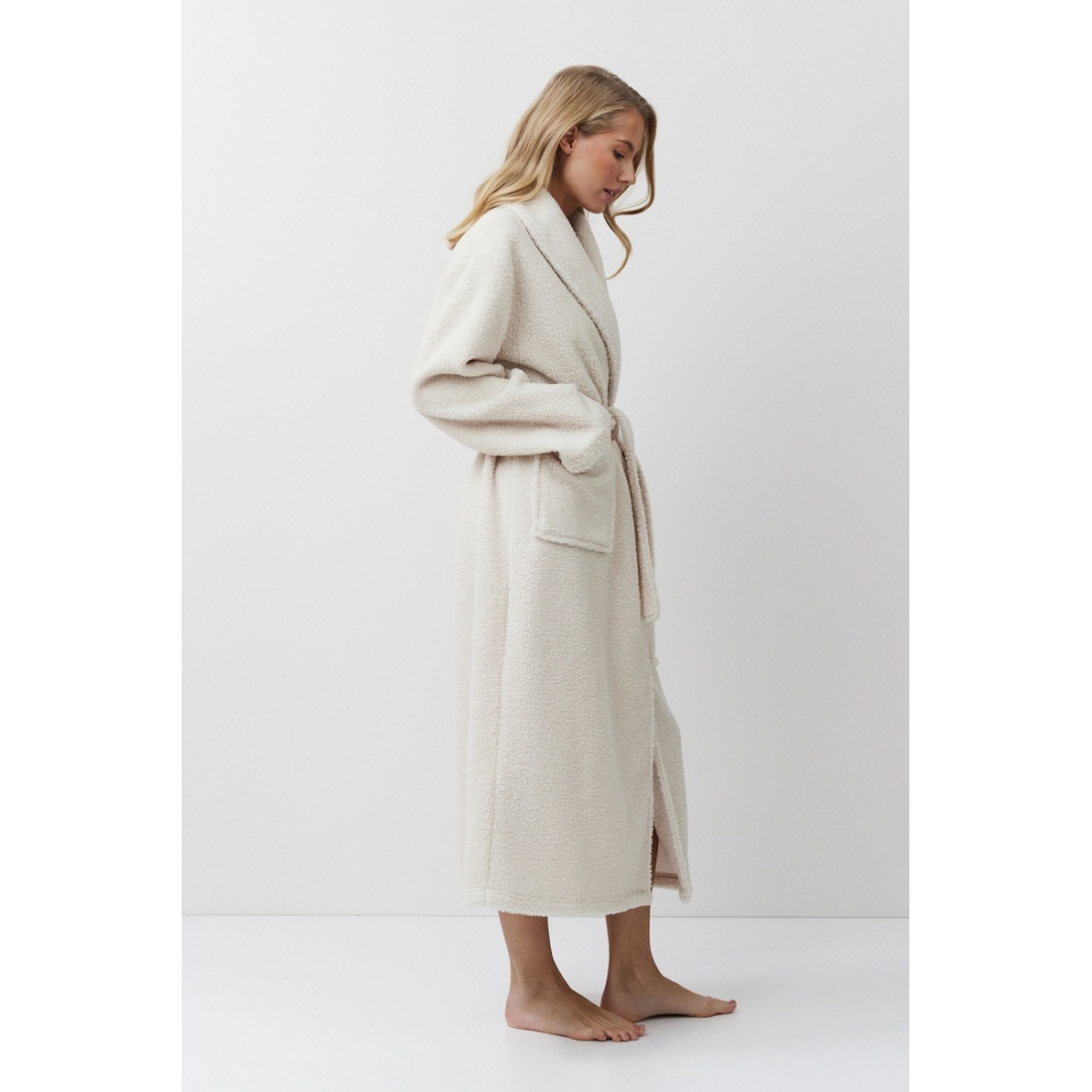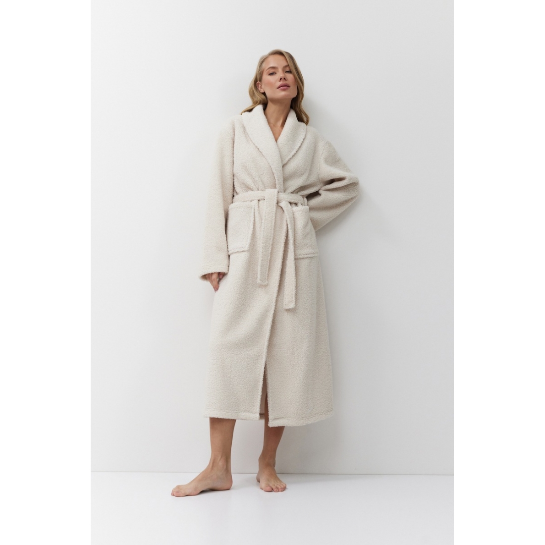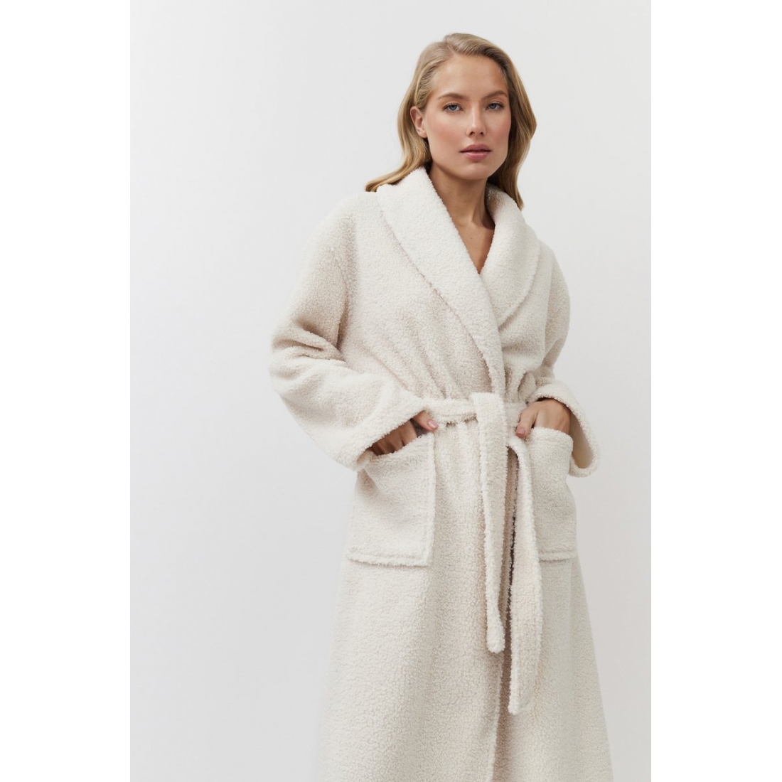 Расслабьтесь с комфортом в мягком халате SIMONE. Теплый халат с поясом, длинный. Изготовлен из плотной ткани напоминающую "барашек". Имеются два накладный кармана. Окутает и согреет вас в холодное время года. В нем вам будет тепло и уютно!