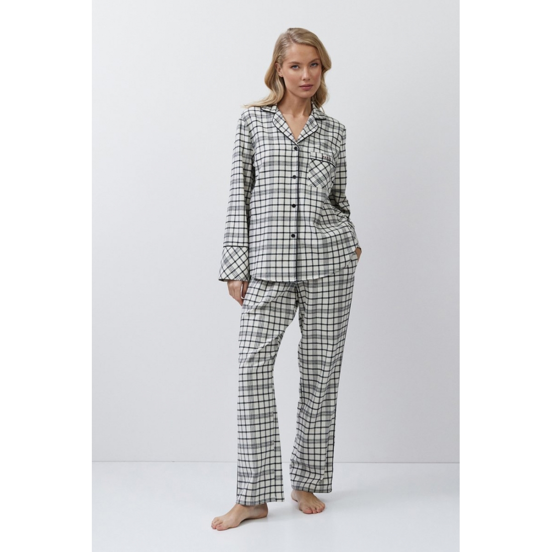 Пижама женская с шортами TERRA для вашего ночного комфорта. Пижама изготовлена из фланелевого хлопка с принтом в клетку. Рубашка на пуговицах, с длинными рукавами, отложным воротником и нагрудным карманом. Окантовка дополняет и украшает комплект. Штаны свободные, с эластичным поясом с завязкой. Расслабьтесь с максимальным комфортом и стилем в пижаме TERRA.