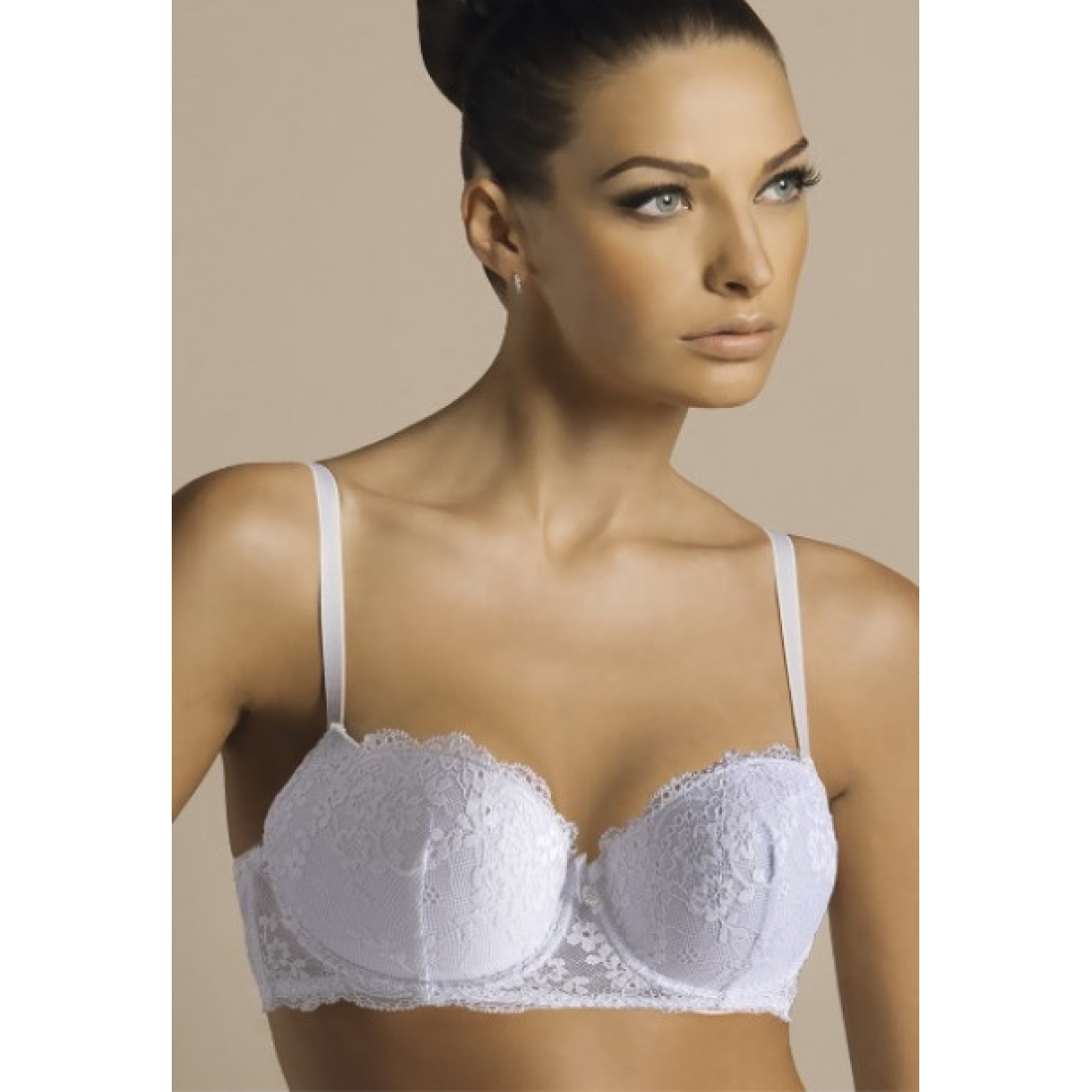 Бюстгальтер на косточках с формованными чашками и с кружевом. Не деформируется при стирке.