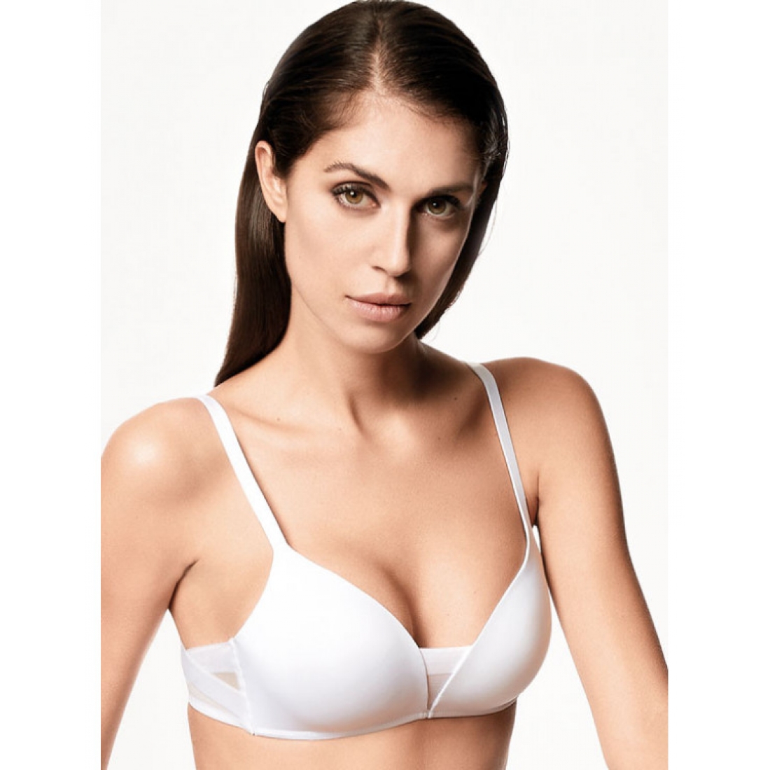 Бюстгальтер-триангул без косточек с формованной чашкой без Push-Up. Выполнен из мягкой микрофибры и сетки с бесшовным краем.