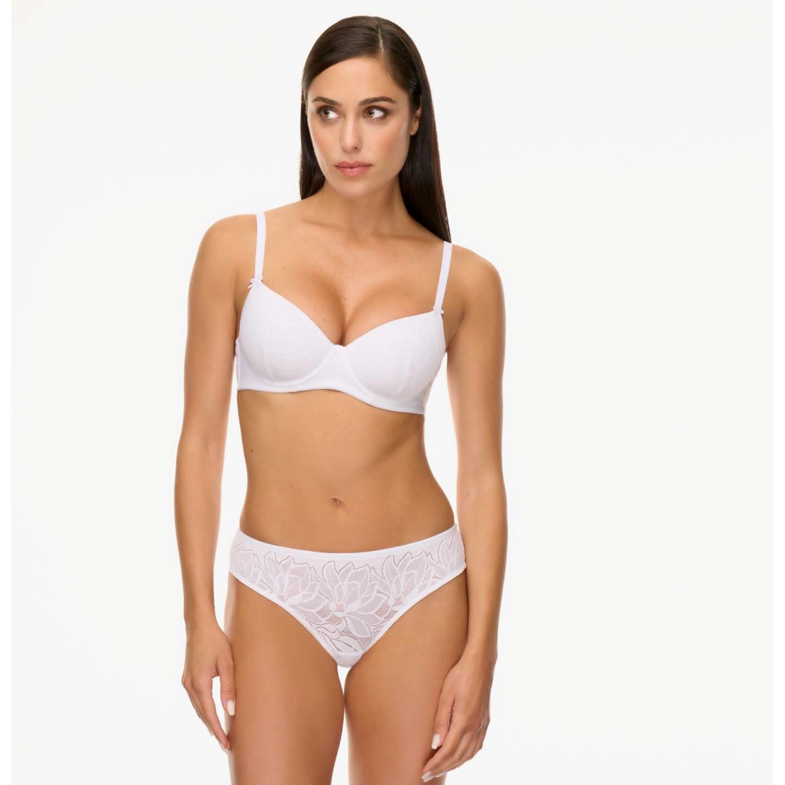 Бюстгальтер балконет на косточках с мягкой чашкой из микрофибры и эластичной жаккардовой ткани.