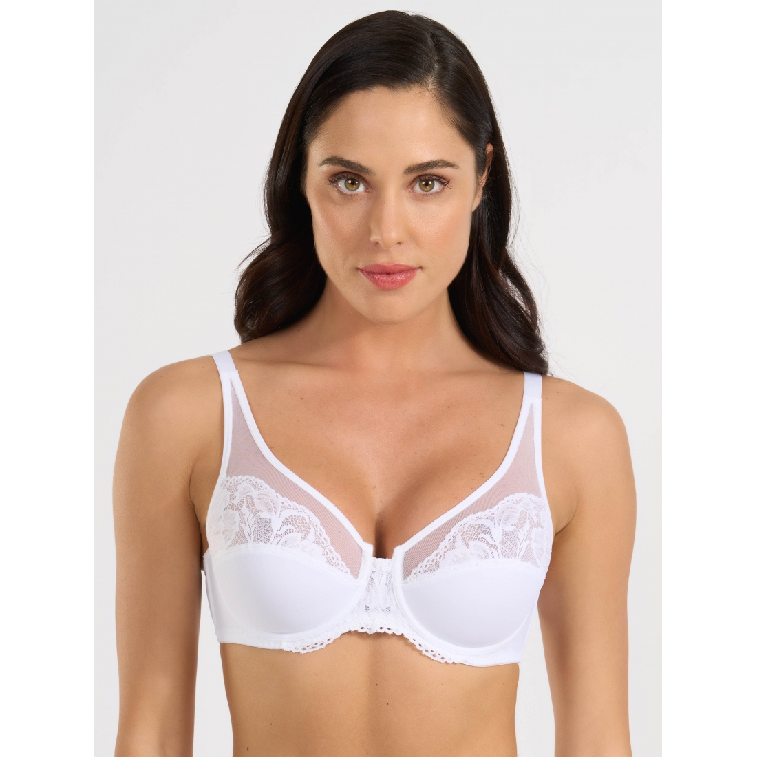 Мягкий бюстгальтер на косточках из легкой микрофибры со вставками из сетчатой ткани с жаккардовым кружевом.