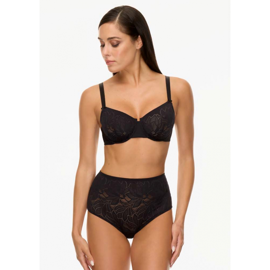 Бюстгальтер на косточках, выполненный из микрофибры и эластичной жаккардовой ткани. Внутренняя подкладка из легкого трикотажа.