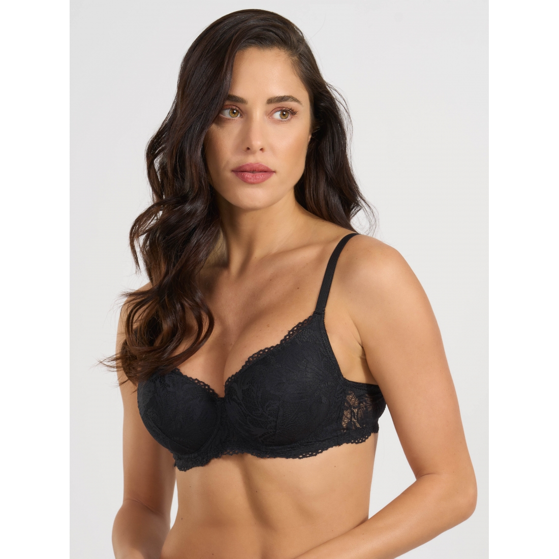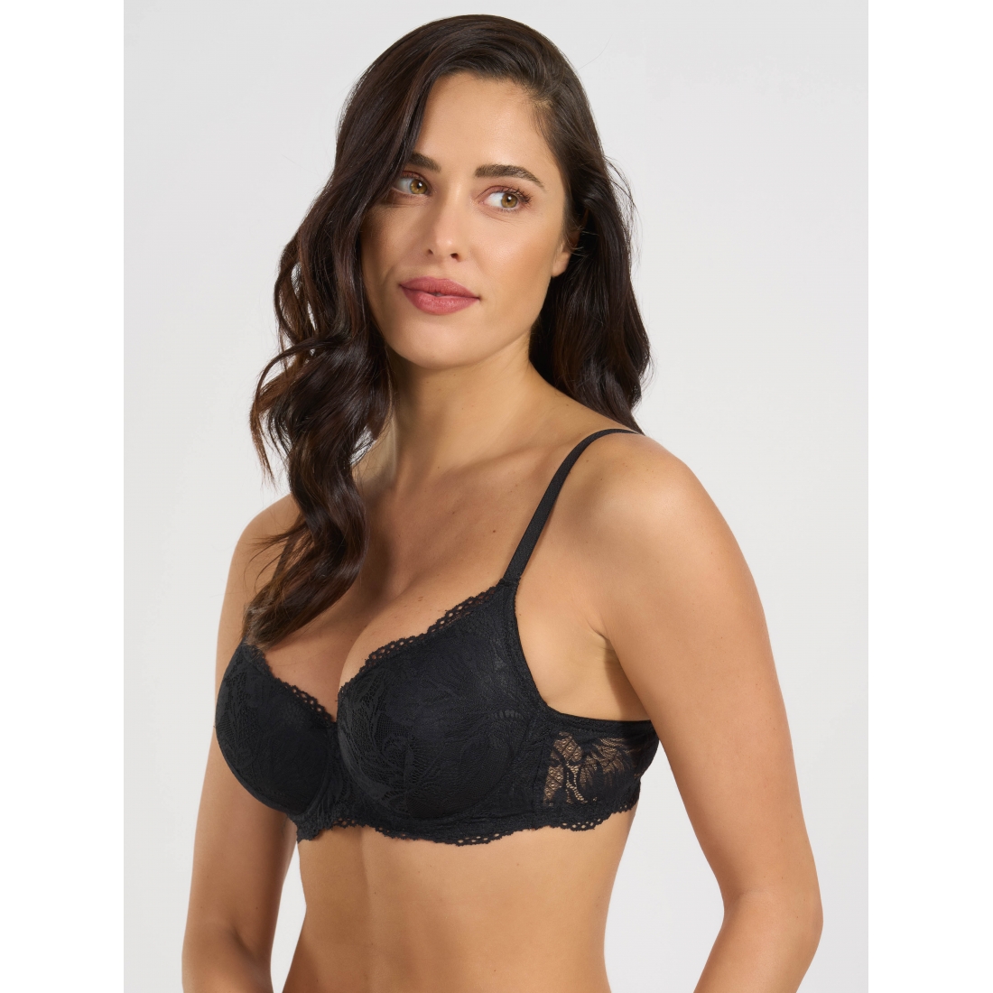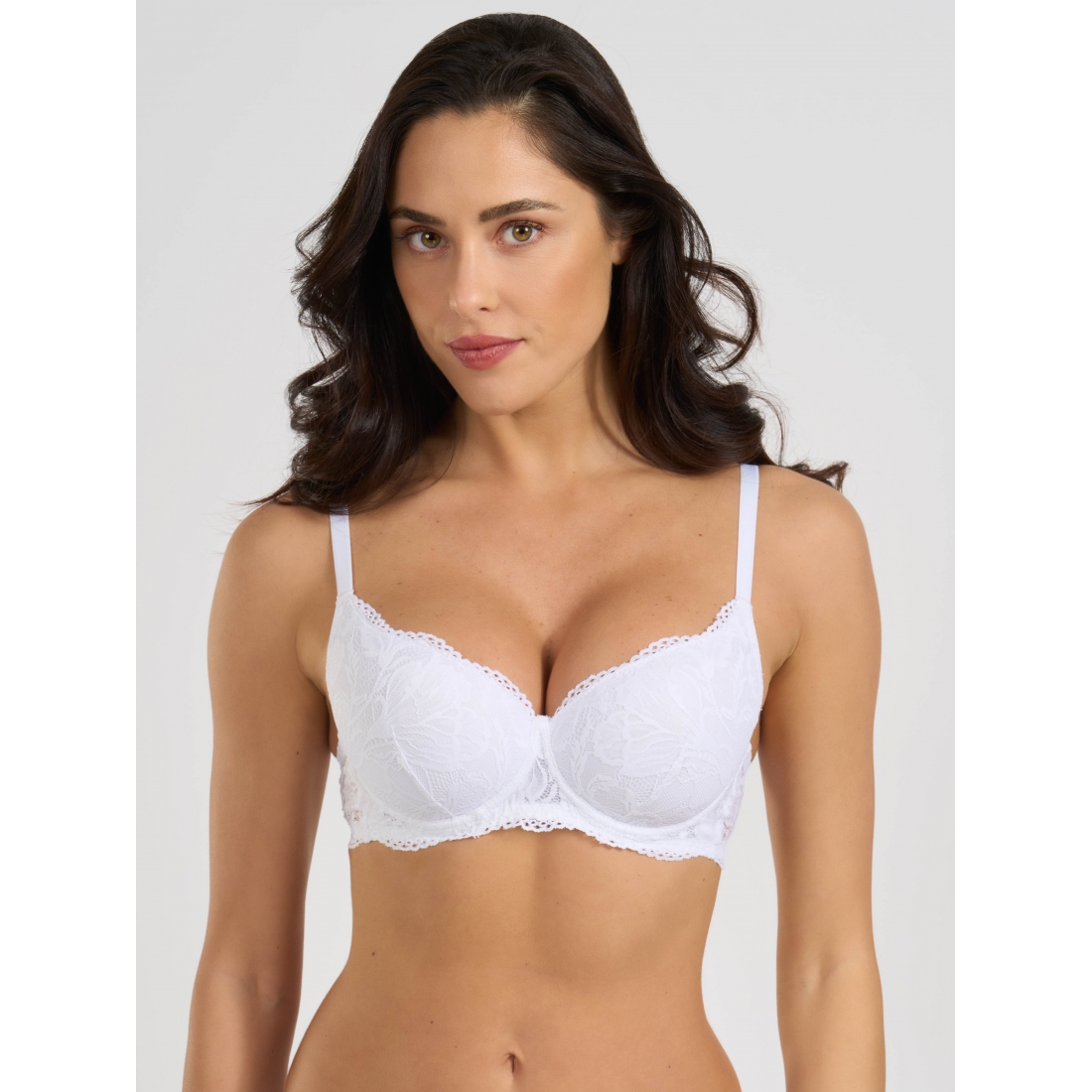 Бюстгальтер балконет на косточках с мягкой формованной чашкой из тонкого поролона. Выполнен из эластичного кружева.