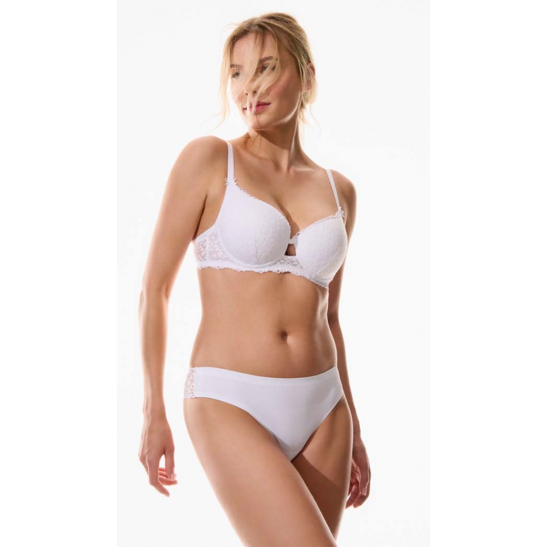 Бюстгальтер на косточках, выполненный из микрофибры и эластичной жаккардовой ткани. Внутренняя подкл..