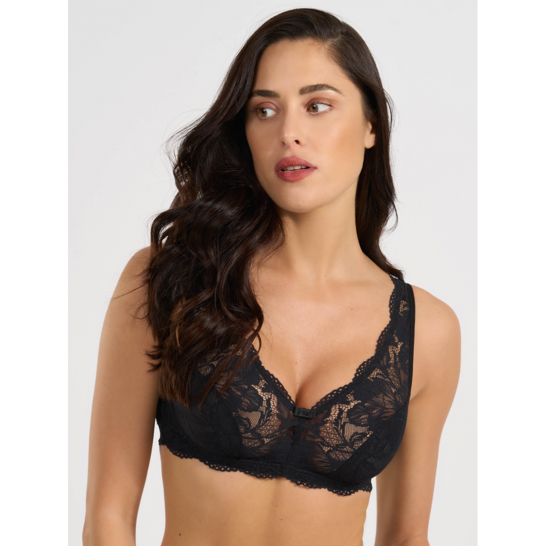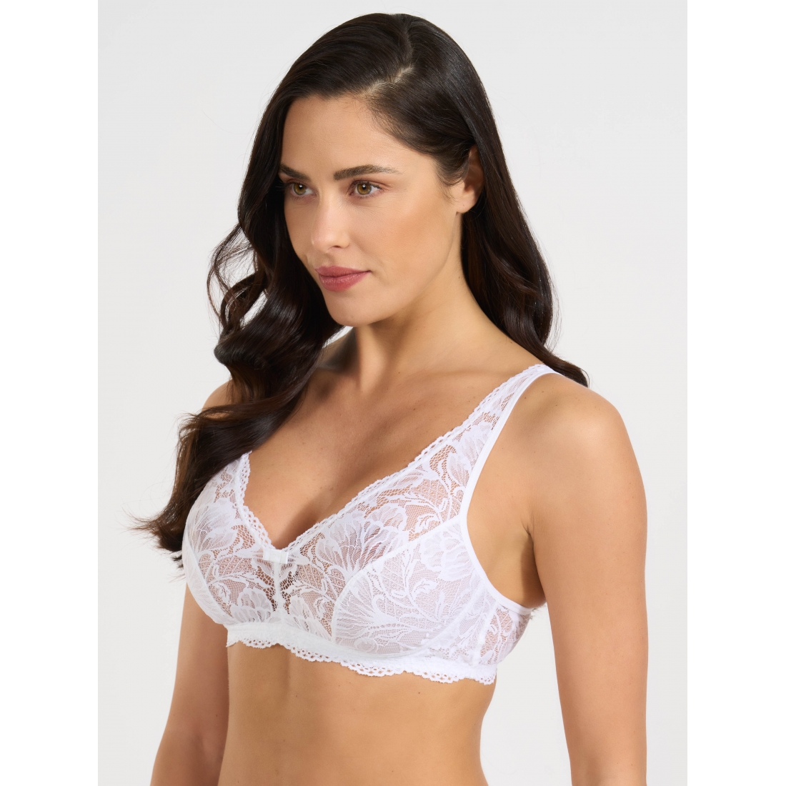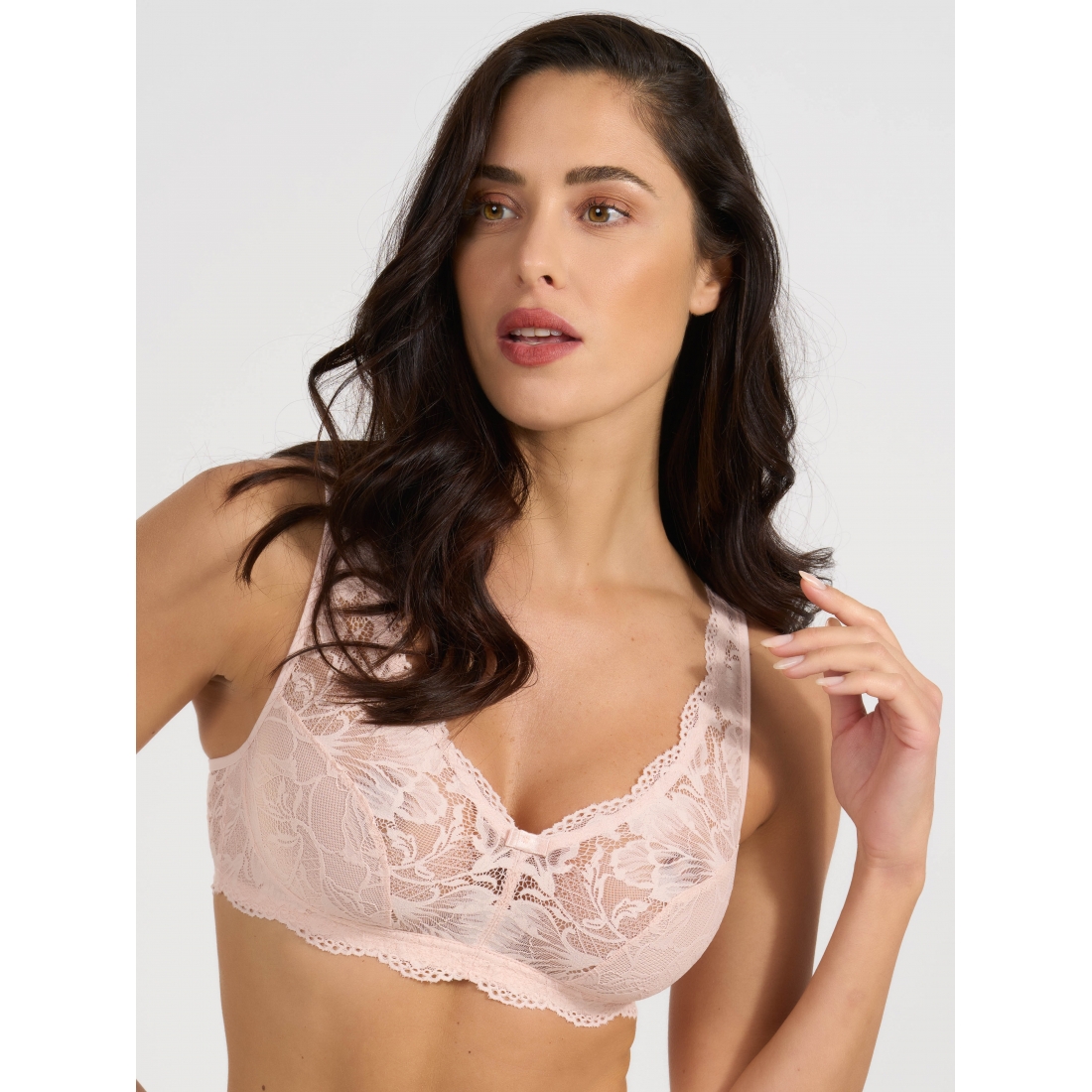 Бюстгальтер без косточек, выполнен из кружева. Бретели несъемные, регулируемые.