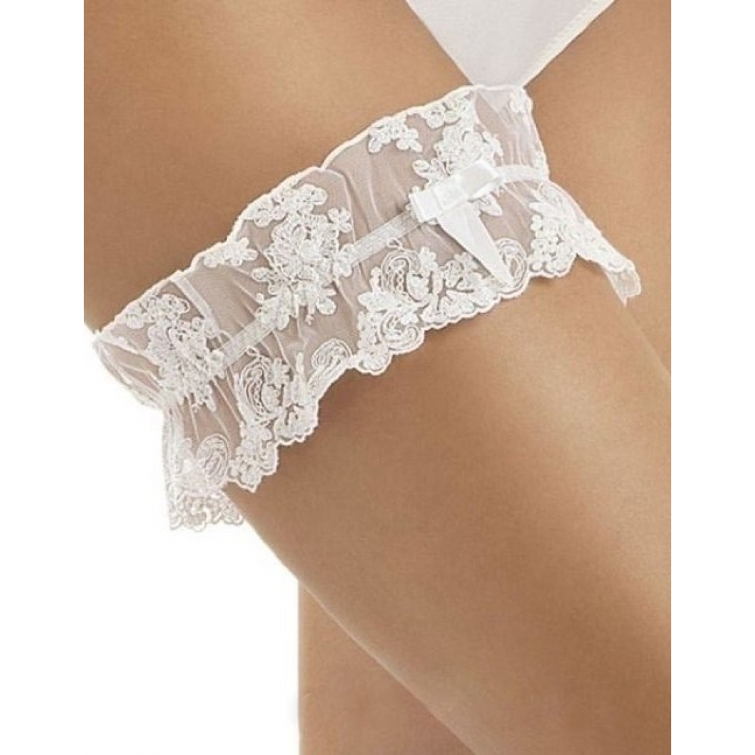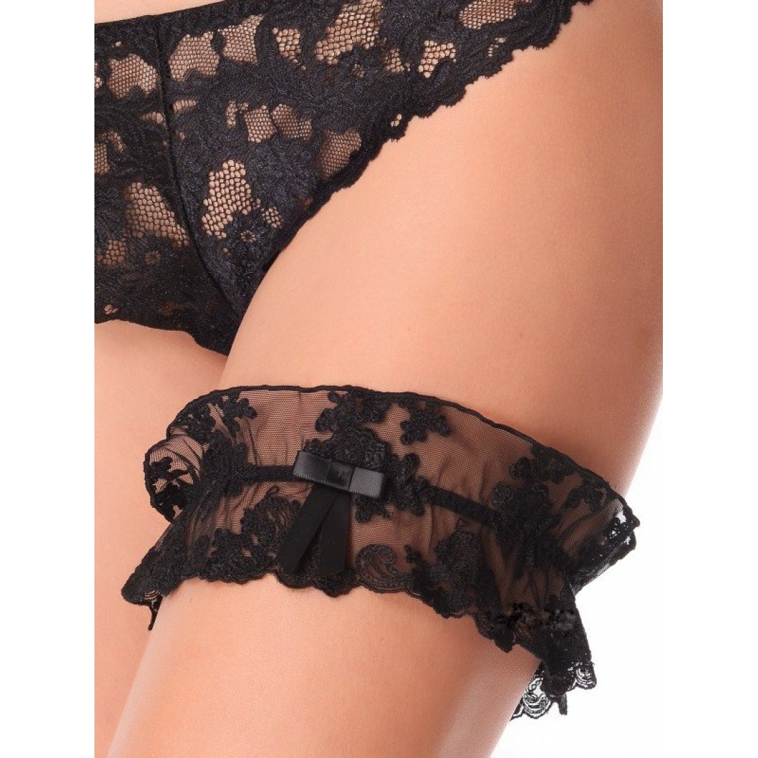 Описание кружевная подвязка с атласным бантом и разрезом.